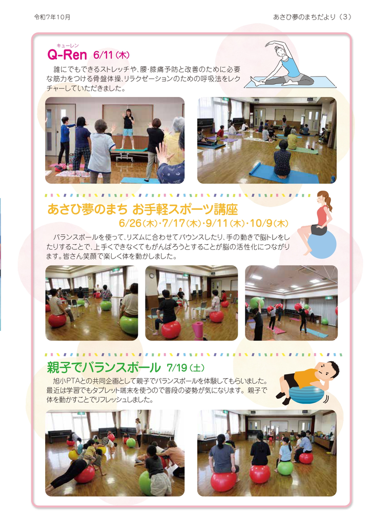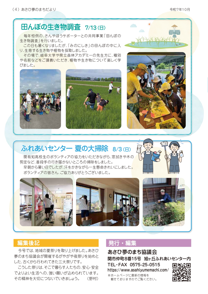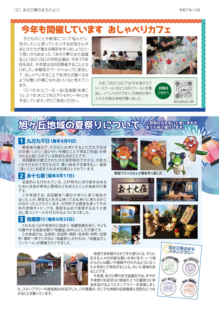 vol.23では、ガヤガヤ夜祭りや旭丘地域の夏祭り、おしゃべりカフェ、Q-Renやお手軽スポーツ講座など、令和7年度の前半に実施した事業をまとめて報告しました。